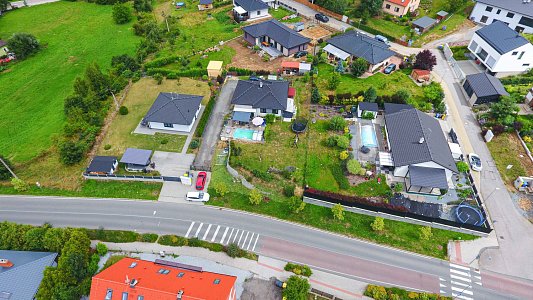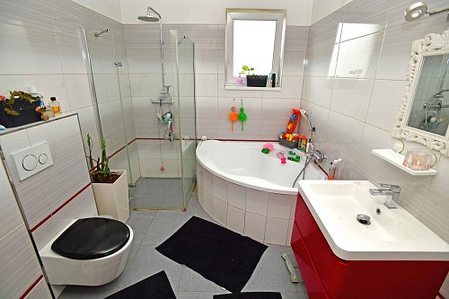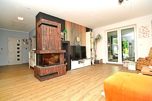 V celém domě je podlahové vytápění s termostatem v každé místnosti, což zajistí příjemnou teplotu po celý rok. Ohřev vody zajišťuje bojler a dům je připraven k okamžitému nastěhování bez dalších investic.