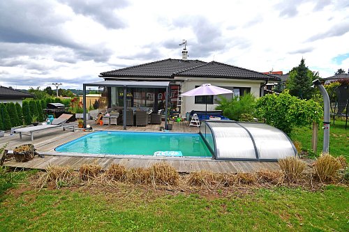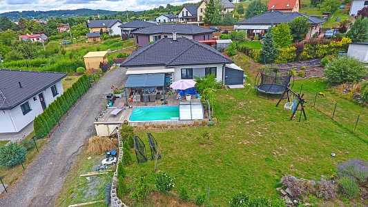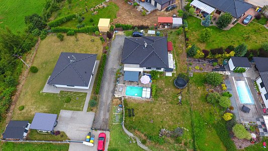 Na pozemku o výměře 1 022 m² vás potěší krytý bazén o velikosti 6 × 3 m, vířivka - jakuzzi a také zahradní domek, který poslouží jako praktické zázemí pro zahradní techniku nebo sportovní vybavení.